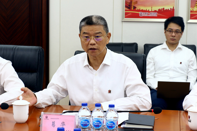 座談會上,葛華董事長首先向崇明區委區政府、上海富盛經濟開發區多年來對集團的關心和支持表示感謝。葛華董事長詳細介紹了鈺翔控股集團的發展歷程、產業布局和集團近期經營情況。集團創立36年以來,緊跟國家戰略,搶抓戰略機遇,發展成為一家智慧供應鏈管理企業集團。在今年全民抗擊新冠肺炎疫情期間,集團為火神山等抗疫醫院配送建材,為疫情嚴重地區捐贈130萬元抗疫物資,積極踐行社會責任。葛華董事長希望崇明區政府制定政策采取措施,紓解民營企業融資難、融資貴等方面的問題。