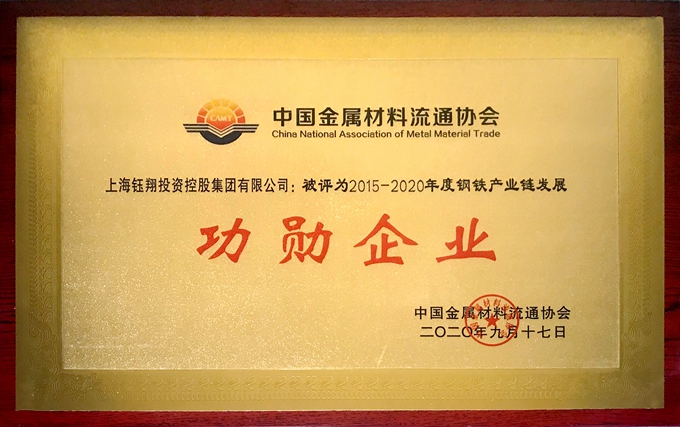 近日,中國金屬材料流通協會第十五屆中國鋼鐵流通促進大會在石家莊隆重召開。會上,上海鈺翔投資控股集團入選“2019年度鋼材銷售五十強企業”和“2015-2020年度鋼鐵產業鏈發展功勛企業”,集團董事長葛華榮膺“2015-2020年度中國金屬材料流通協會功勛人物”。