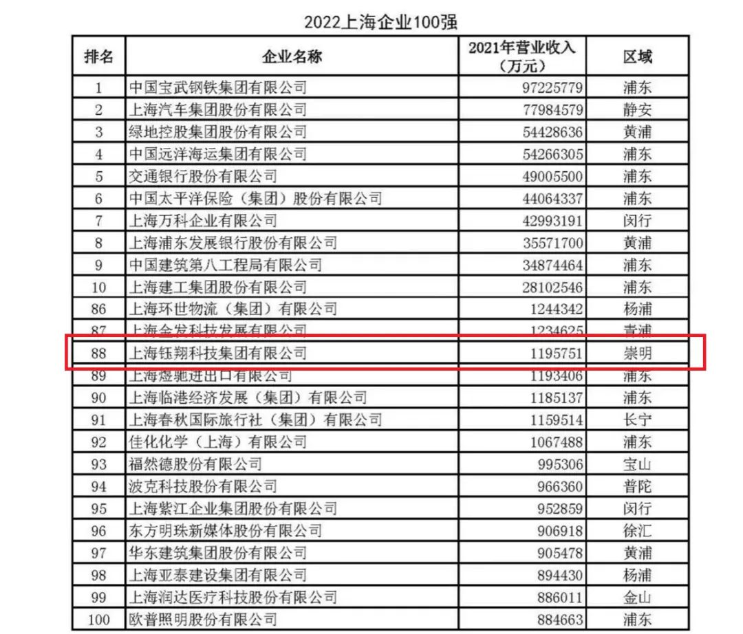 8月30日,由上海市企業(yè)聯(lián)合會、上海市企業(yè)家協(xié)會、上海市經(jīng)濟(jì)團(tuán)體聯(lián)合會和解放日報(bào)社聯(lián)合主辦的2022上海百強(qiáng)企業(yè)發(fā)布會在上海隆重舉行,會上發(fā)布了2022上海企業(yè)百強(qiáng)、2022上海民營企業(yè)百強(qiáng)等多項(xiàng)企業(yè)榜單。