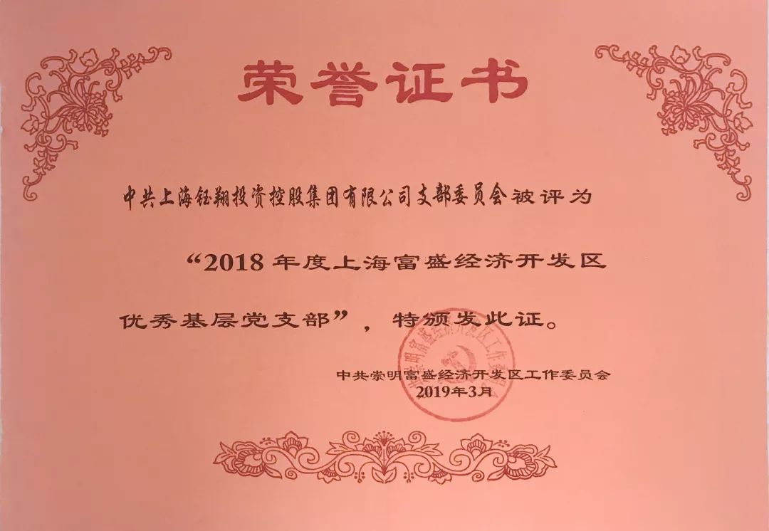 集團(tuán)黨支部成立以來,多次受到上海市、崇明區(qū)、富盛經(jīng)濟(jì)開發(fā)區(qū)等各級政府和管理部門的獎勵,曾榮獲上海市兩新組織先進(jìn)基層黨組織、崇明區(qū)學(xué)習(xí)型黨組織建設(shè)示范點(diǎn)等多項(xiàng)榮譽(yù)。